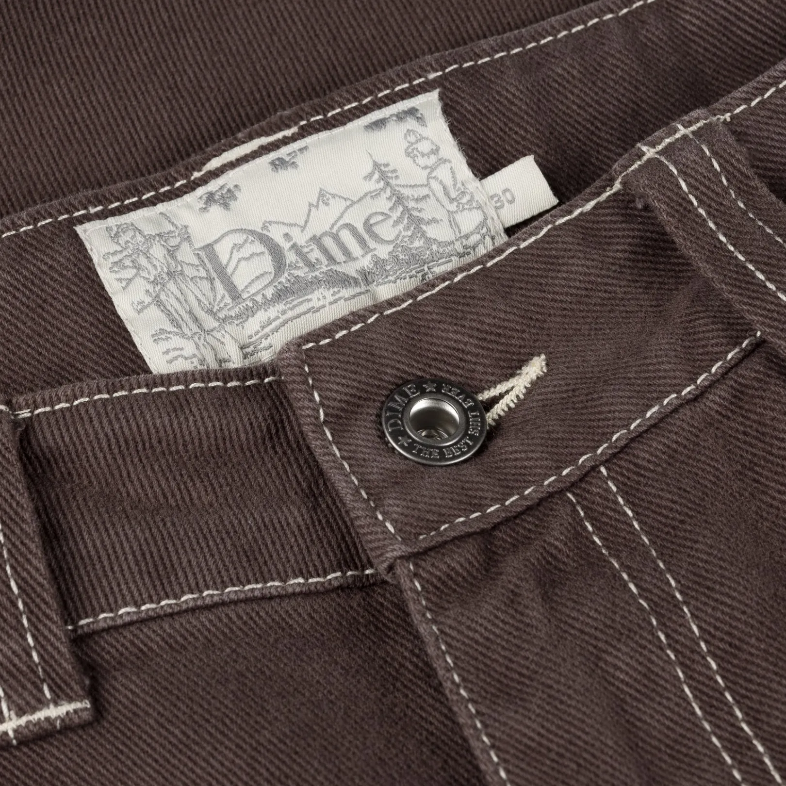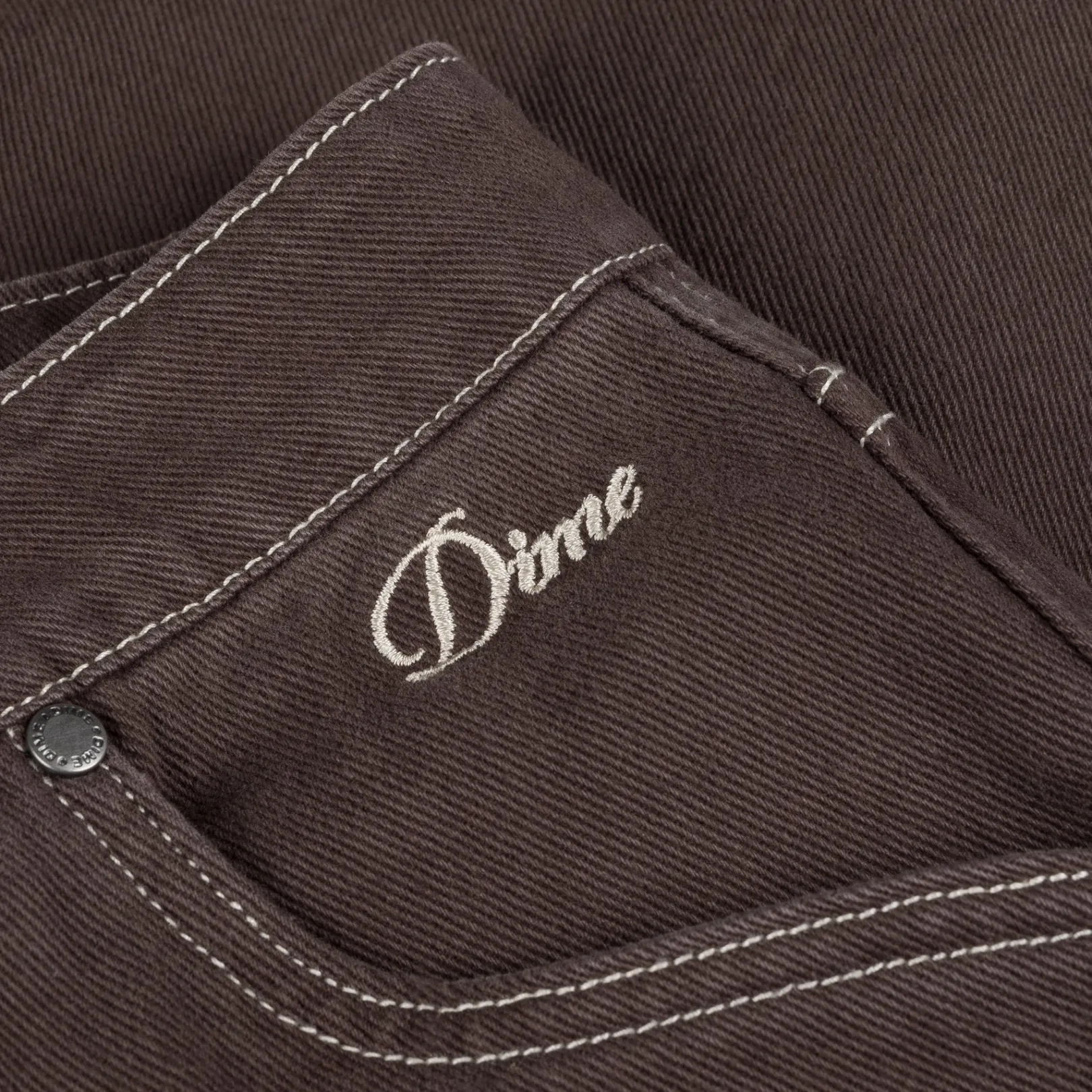 Cursive logo embroidery at left front pocket