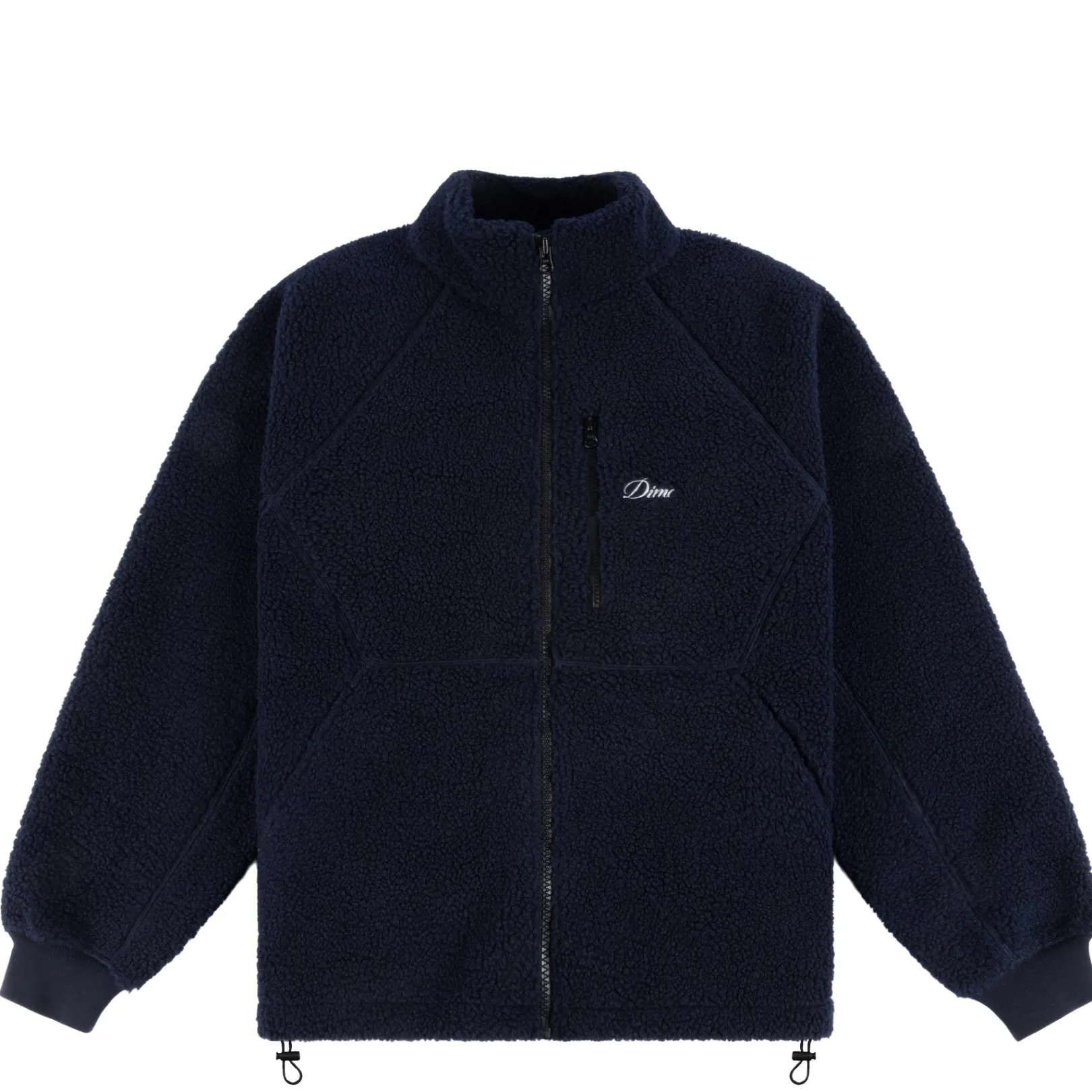 100% PolyesterYKK zipper along center frontCursive embroidery along left hand side of chestRib cuffsPocket opening at wa…