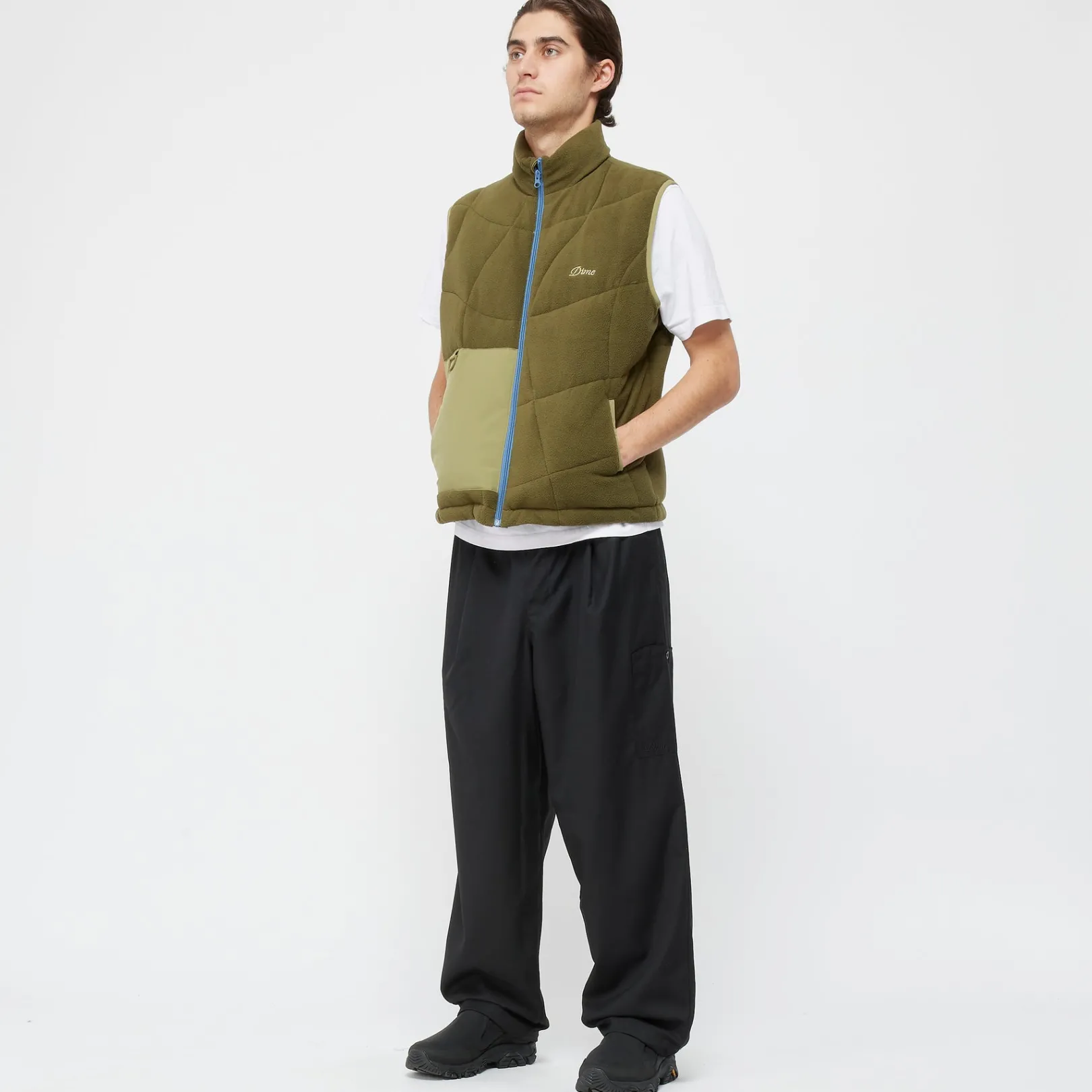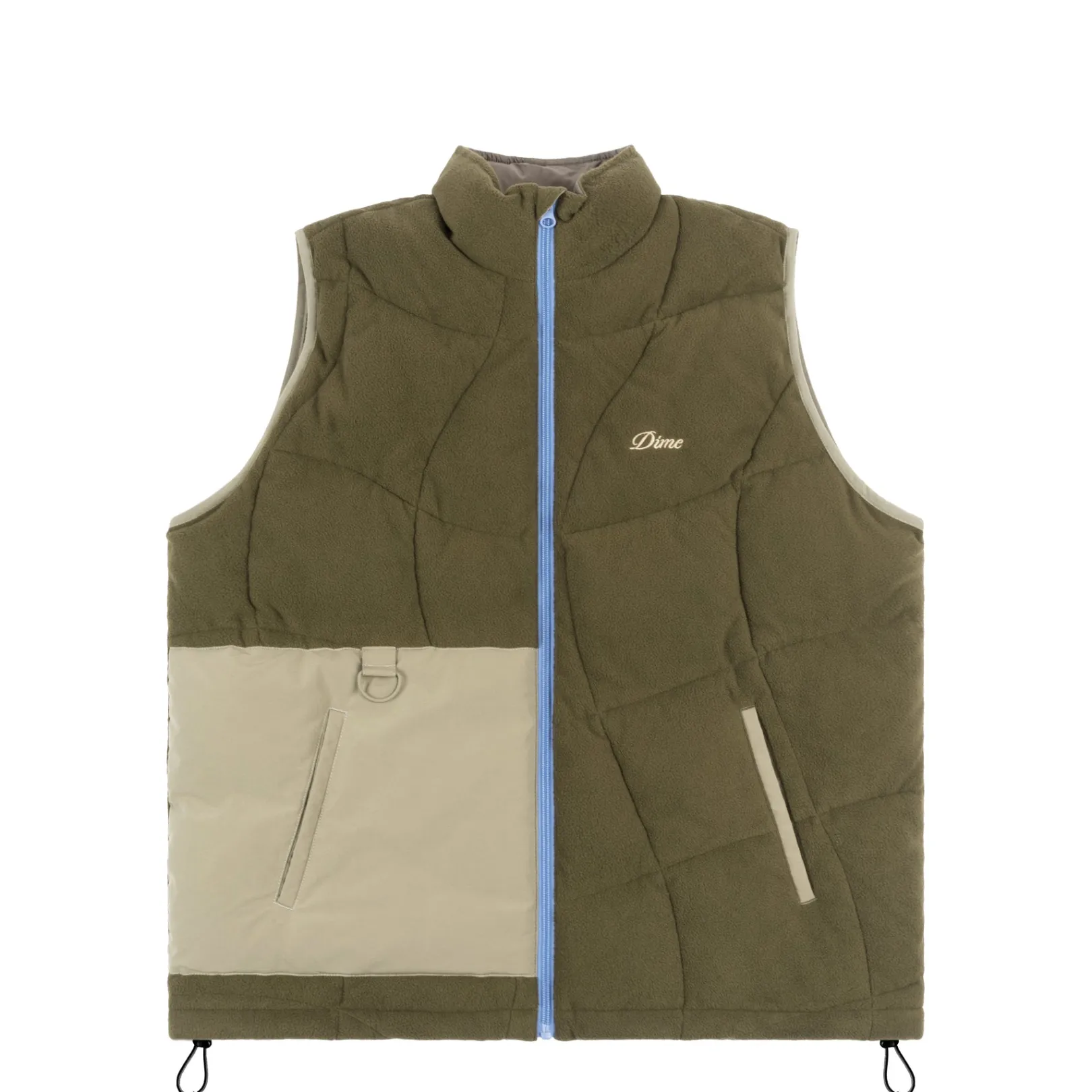 Main: 100% Polyester fleeceContrast: 100% NylonAll-over wavy quiltingLoftTek insulationWelted waist pocketsZipper closur…
