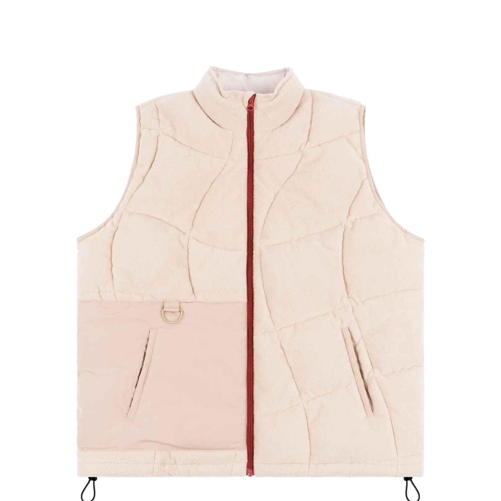 Main: 100% Polyester fleeceContrast: 100% NylonAll-over wavy quiltingLoftTek insulationWelted waist pocketsZipper closur…