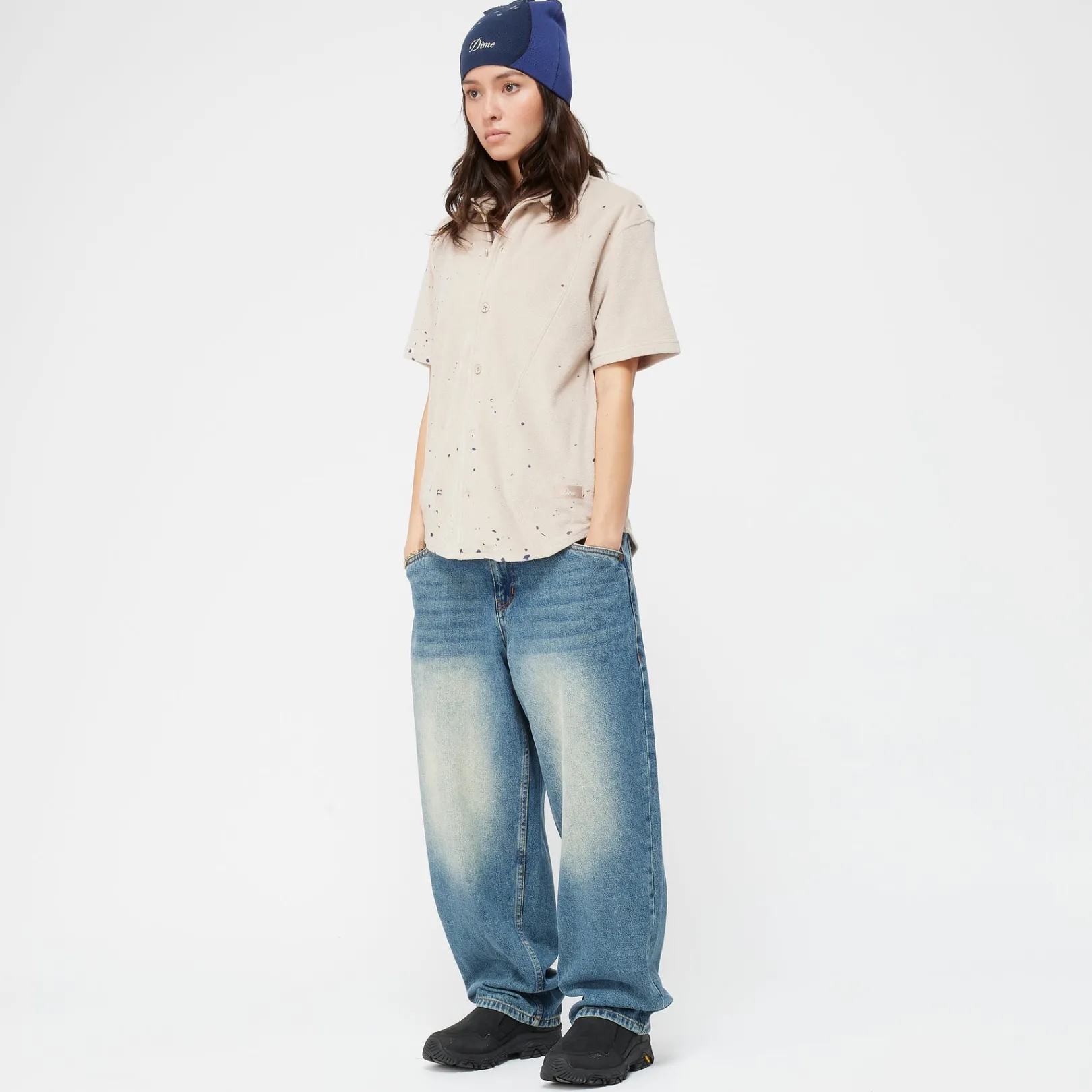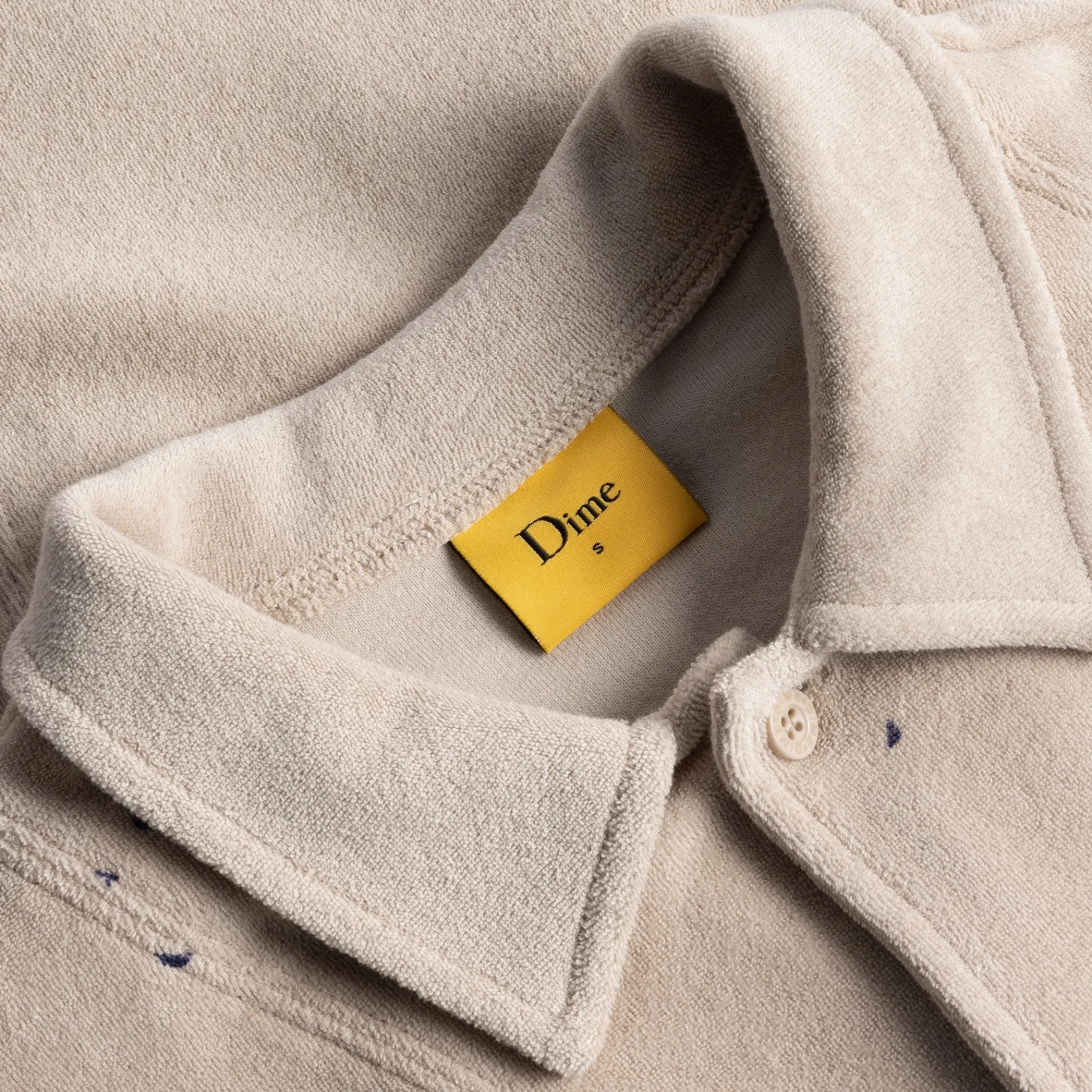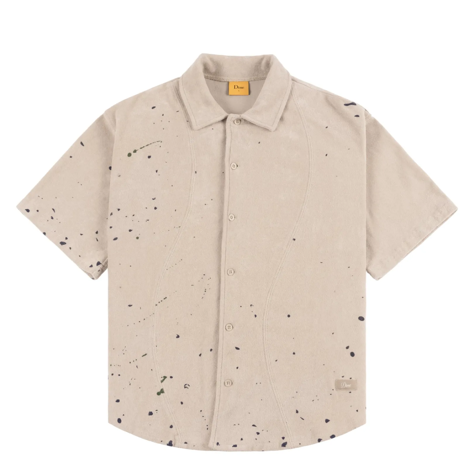 100% CottonSet-in sleevePaint splatter on beige comboCenter front placket with facingCustom dtm buttons along center fro…